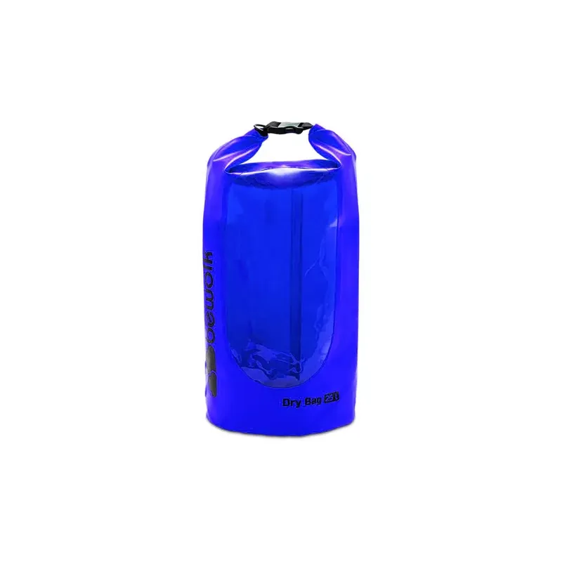 Capacidad: 25 litros, Material: PVC de alta resistencia, Cierre: Sistema hermético con sellado por calor, Uso: Protección contra agua, polvo y suciedad, Ideal para: Actividades al aire libre como camping, senderismo y deportes acuáticos, Diseño: Con ventana para fácil visualización del contenido, Resistencia: Impermeable, resistente a la humedad y condiciones extremas, Color: Azul, Visibilidad: Ventana para identificar contenido sin abrir la bolsa, Ventaja: Compacta, ligera y fácil de transportar.