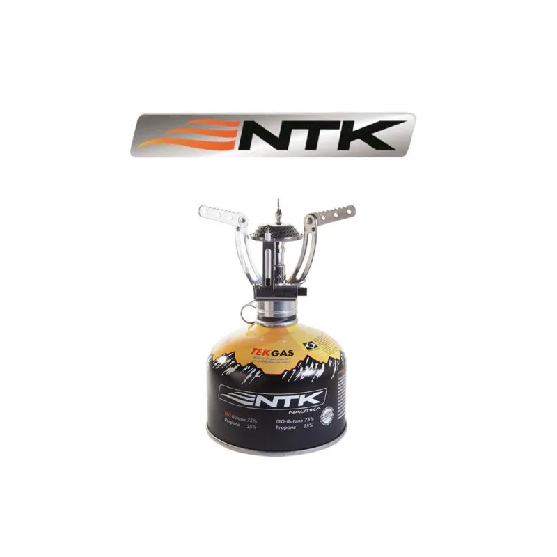 Calentador compacto a gas de acero inoxidable, sumamente resistente. Ideal para pesca, trekking o bicicleta. Perilla que permite una fina regulación de llama. Consumo: 130 gr/hr.