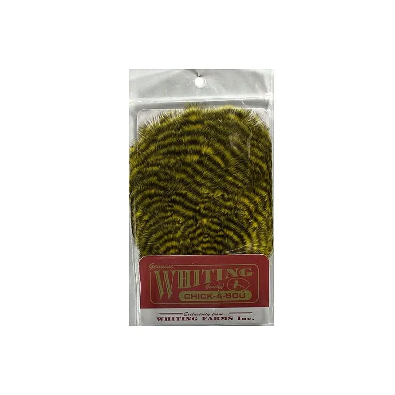 El Chick-a-Bou es uno de los productos más versátiles que produce Whiting Farms. Las plumas tipo marabú o marabou barrado del parche Chick-a-Bou son suaves, delicadas y poseen un movimiento único, son perfectas para atar pequeñas ninfas, branquias, colas de buggers, damsels y más.