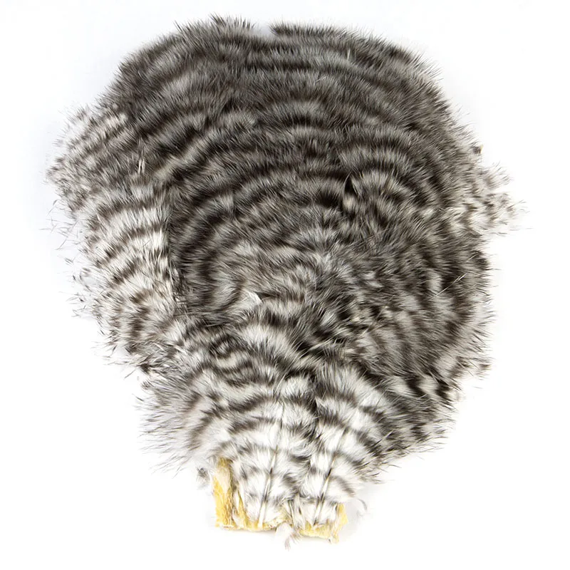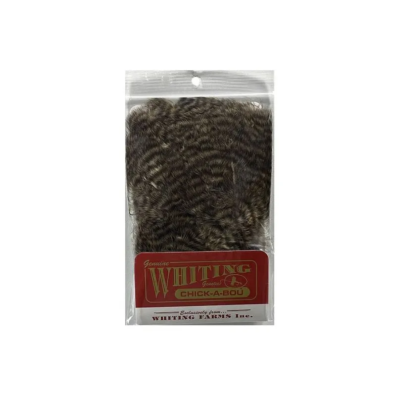 El Chick-a-Bou es uno de los productos más versátiles que produce Whiting Farms. Las plumas tipo marabú o marabou barrado del parche Chick-a-Bou son suaves, delicadas y poseen un movimiento único, son perfectas para atar pequeñas ninfas, branquias, colas de buggers, damsels y más.