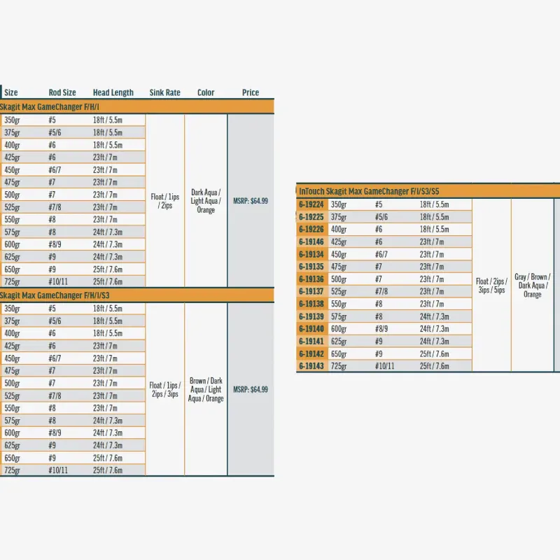 LINEA RIO SKAGIT MAX GAMECHANGER 450GR 6/7 F/I/S3/S5