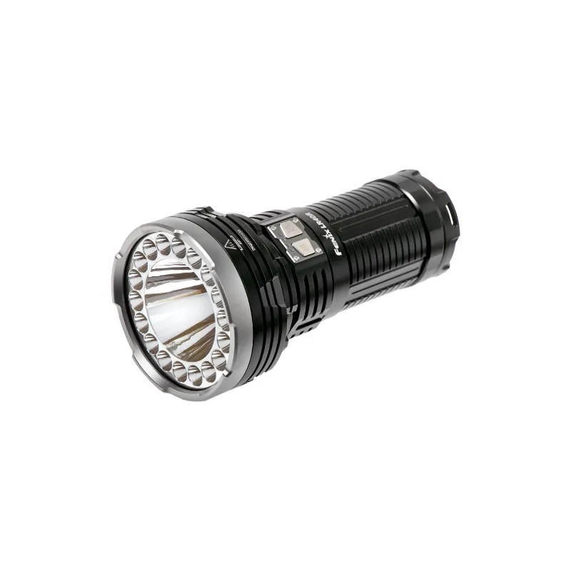 Características: Potencia máxima de 12000 lúmenes, Alcance de haz de hasta 773 metros, Modos de iluminación: 11 niveles (incluye estroboscópico y SOS), Batería recargable integrada de 12000 mAh, Resistencia al agua IP68 (sumergible hasta 2 metros), Construcción de aluminio de grado aeronáutico con acabado anodizado, Botón de control dual para modos de haz amplio y haz de largo alcance, Recarga rápida mediante puerto USB-C con función de power bank.