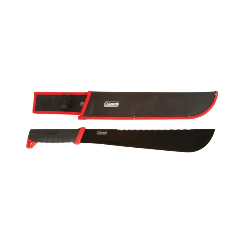 Tipo: Machete, Marca: Coleman, Modelo: Rugger, Material de la hoja: Acero inoxidable de alta calidad, Longitud de la hoja: 40 cm, Mango: Ergonómico y antideslizante, diseñado para un agarre cómodo y seguro, Diseño: Robusto y duradero, ideal para cortar ramas, arbustos y otros obstáculos en el campo, Características: Hoja afilada y resistente, perfecta para tareas de jardinería, campamento o pesca, Ideal para: Aventuras al aire libre, caza, camping y pesca en áreas de vegetación densa, Uso recomendado: Ideal para trabajos de corte en entornos naturales o de pesca, Resistencia: Alta, diseñado para soportar condiciones exigentes y uso frecuente.