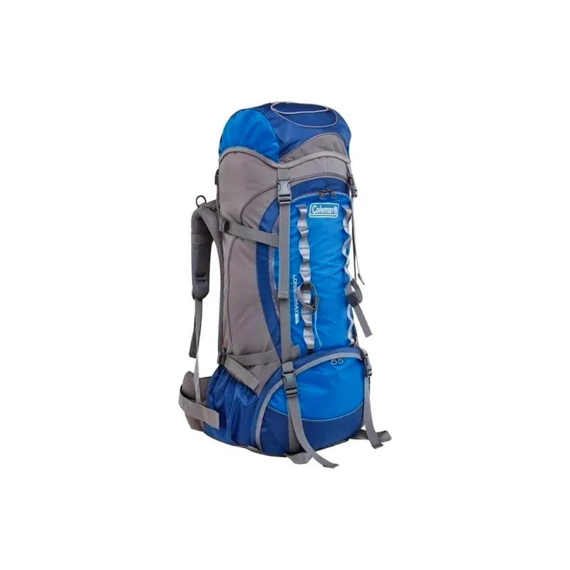 Tipo: Mochila, Marca: Coleman, Capacidad: 70 litros, Color: Gris oscuro, Material: Poliéster 600D resistente al agua, Características: Mochila de gran capacidad con múltiples compartimentos y bolsillos para organización, correas de hombro ajustables y acolchonadas para mayor comodidad, cinturón lumbar ergonómico para distribuir el peso de manera eficiente, Ideal para: Excursionistas, campistas y viajeros de aventura que necesiten llevar un equipo pesado y mantenerlo organizado, Uso recomendado: Perfecta para caminatas largas, trekking, camping y viajes de aventura en los que se requiere llevar equipo y provisiones durante varios días, Resistencia: Alta, diseñada para soportar condiciones de uso exigentes y resistir el desgaste por el contacto constante con la naturaleza.