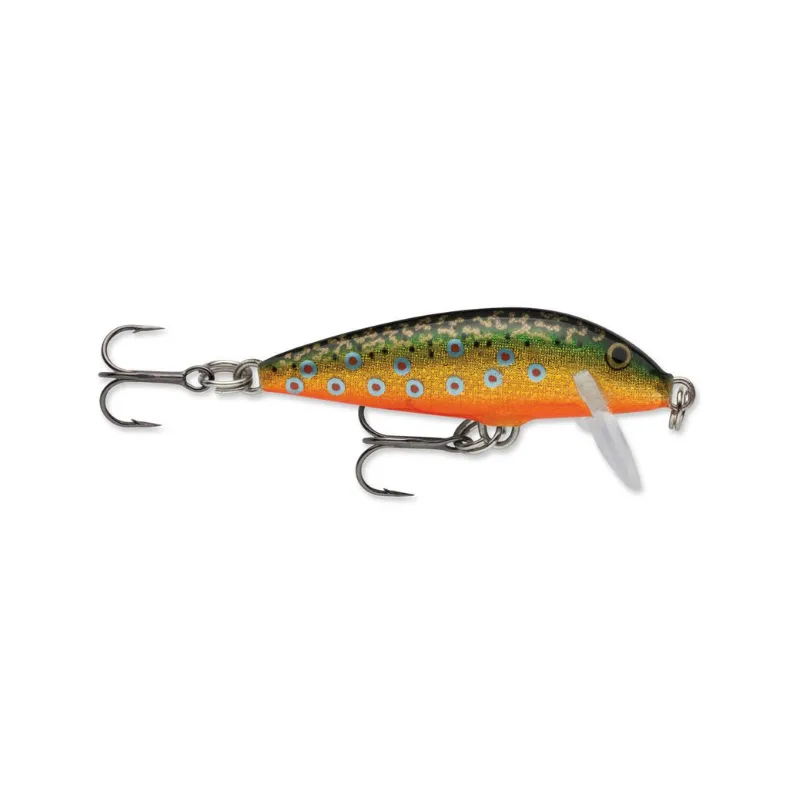 Tipo: Señuelo de pesca Modelo: RAPALA CD3 BTR Longitud: 3 cm Peso: 4 gr Material: Madera balsa premium Uso: Pesca deportiva en agua dulce y salada Características adicionales: Diseño de cuerpo articulado de minnow, con una natación bamboleante y exagerada, acción de \"peces heridos\", sistema de profundización controlada tipo countdown Profundidad de natación: Hasta 3,9 metros Anzuelos: 2 ganchos VMC black nickel Aplicación: Casting, spinning y trolling, ideal para capturar peces predadores como truchas