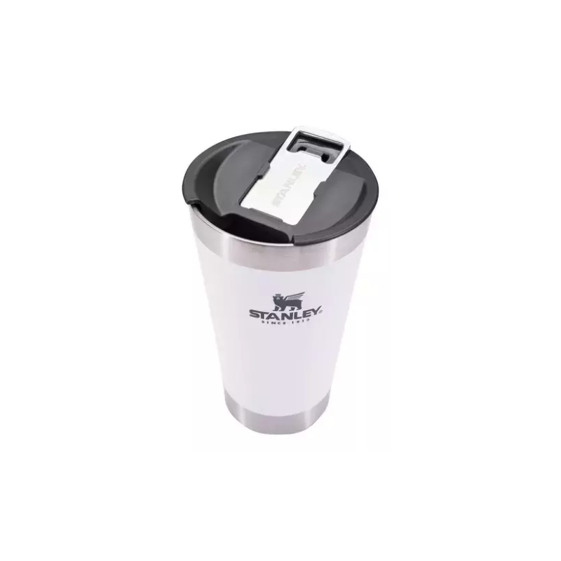Tipo de producto: Vaso térmico | Marca: Stanley | Capacidad: 473 ml | Color: Polar (blanco) | Material: Acero inoxidable de alta calidad, resistente a la corrosión | Características: Vaso estilo pint con destapador integrado en la base, diseñado para mantener las bebidas frías durante horas gracias a su aislamiento al vacío. Ideal para cervezas, vinos o refrescos, y su destapador incorporado lo hace aún más práctico para disfrutar de una bebida refrescante en cualquier lugar | Ideal para: Bebidas frías como cerveza, vino, refrescos, o incluso para bebidas calientes si se necesita | Uso recomendado: Perfecto para actividades al aire libre, reuniones sociales, camping, picnics o en cualquier lugar donde se desee mantener la bebida a la temperatura ideal durante más tiempo | Resistencia: Alta durabilidad, resistente a golpes, humedad y condiciones de salinidad. Mantiene las bebidas frías por largo tiempo gracias a su excelente aislamiento térmico.